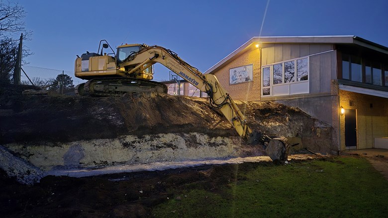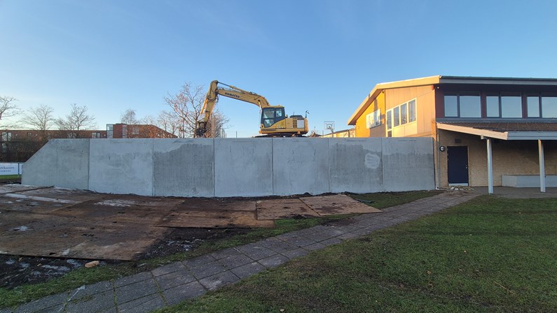 Den 17. november er de store maskiner i gang. Skrænten er gravet væk og der etableres et plateau til støttemuren