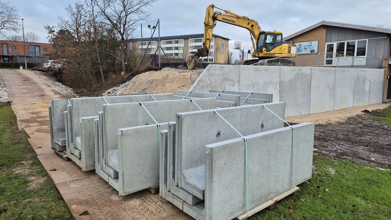 Den 12. december er tribuneelementerne ankommet og klar til montage.