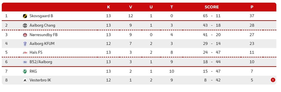 Næste spillerunde er sidste spillerunde. Her skal vi lørdag den 26. oktober kl. 12:00 møde Vesterbro IK på Vadum Stadion, mens dagens modstander fra Hals FS skal møde Aalborg Chang i en svær hjemmekamp.